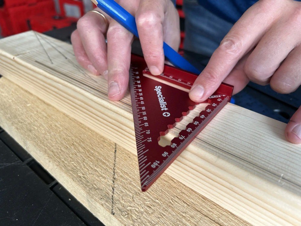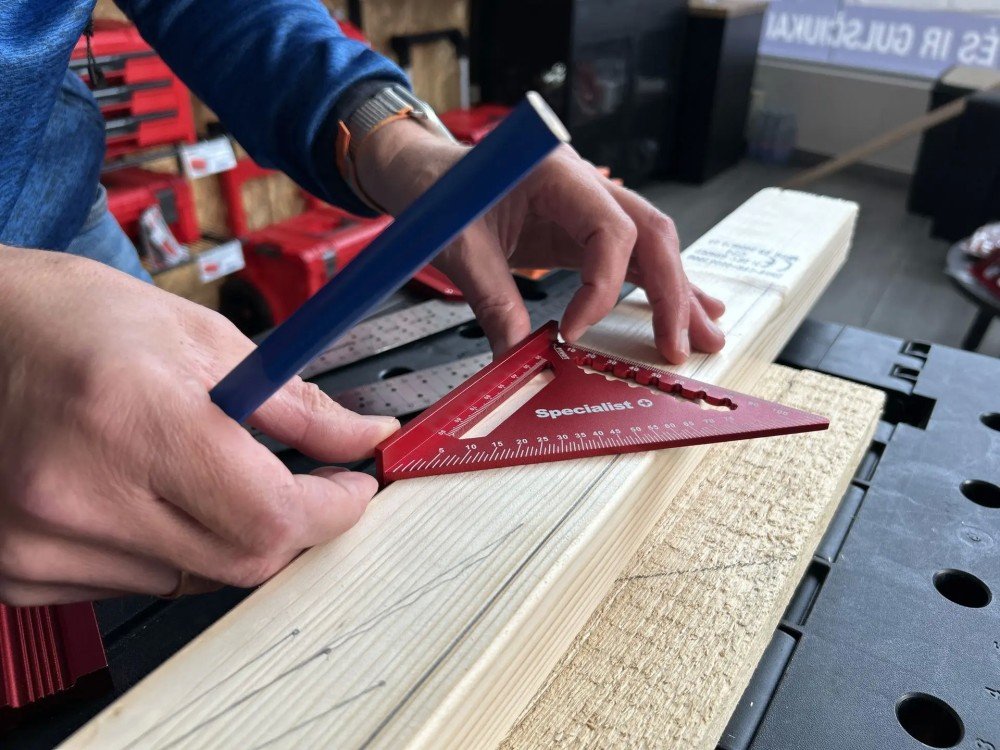 • Matavimui, žymėjimui ir pjovimo kampų nustatymui
