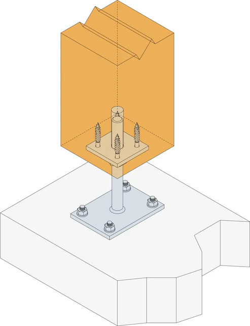 Stulpelių atramos skirtos montuoti atramas ir (arba) stulpelius, kuriuos veikia tik slėgis. Atrama pilnai cinkuota; Cinko dangos storis apie 55 mikronai pagal DIN EN 1461. Prie betoninio pamato jungiami inkariniais varžtais.